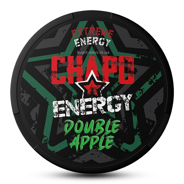 Chapo Energy Double Apple 150 mg– мощные кофеиновые паучи с насыщенным вкусом спелых яблок. Каждая шайба содержит 20 мягких паучей, которые удобно садятся под губу и обеспечивают мгновенный заряд бодрости.